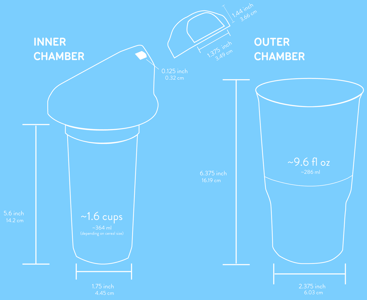 Say goodbye to soggy cereal, The CrunchCup® keeps your cereal crunchy. Simply add cereal to the inner cup, milk into the outer cup, screw on the lid, and you're ready to crunch. The milk and cereal don't meet until it's time to eat.  See How it Works